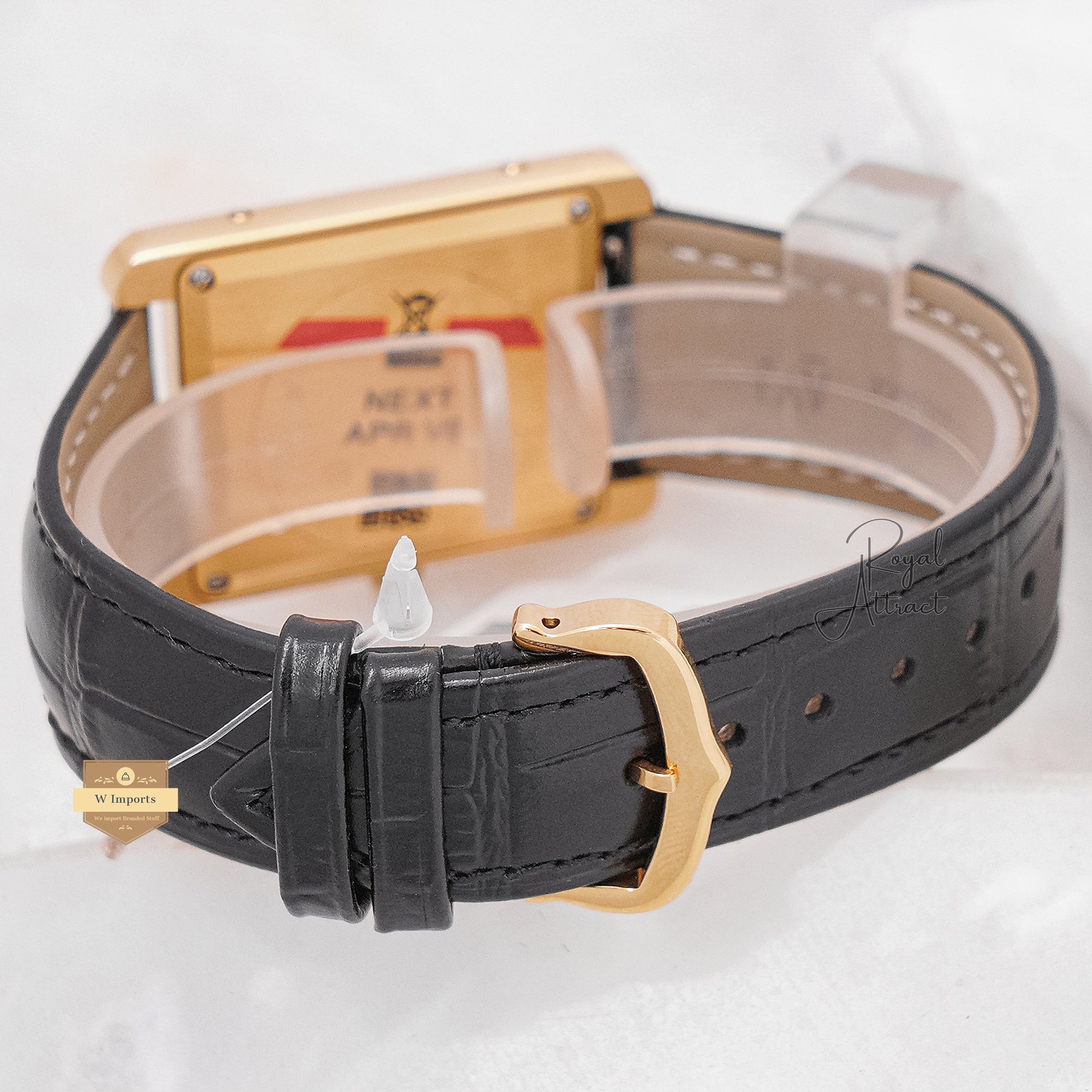 Latest Collection Yellow Gold Case With Black Dial & Leather Strap Watch