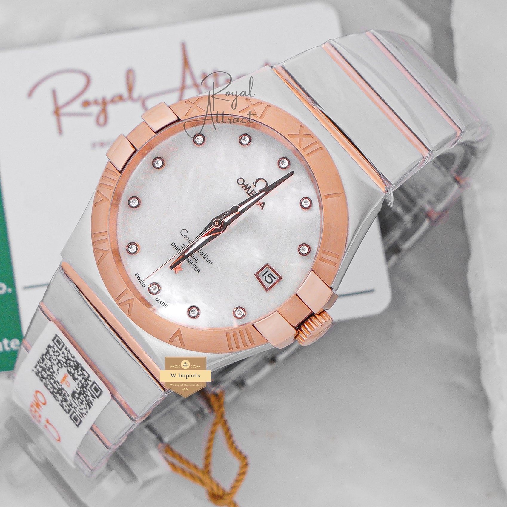 Latest Collection Two Tone Rose Gold With White texture Dial & Stone Figure
