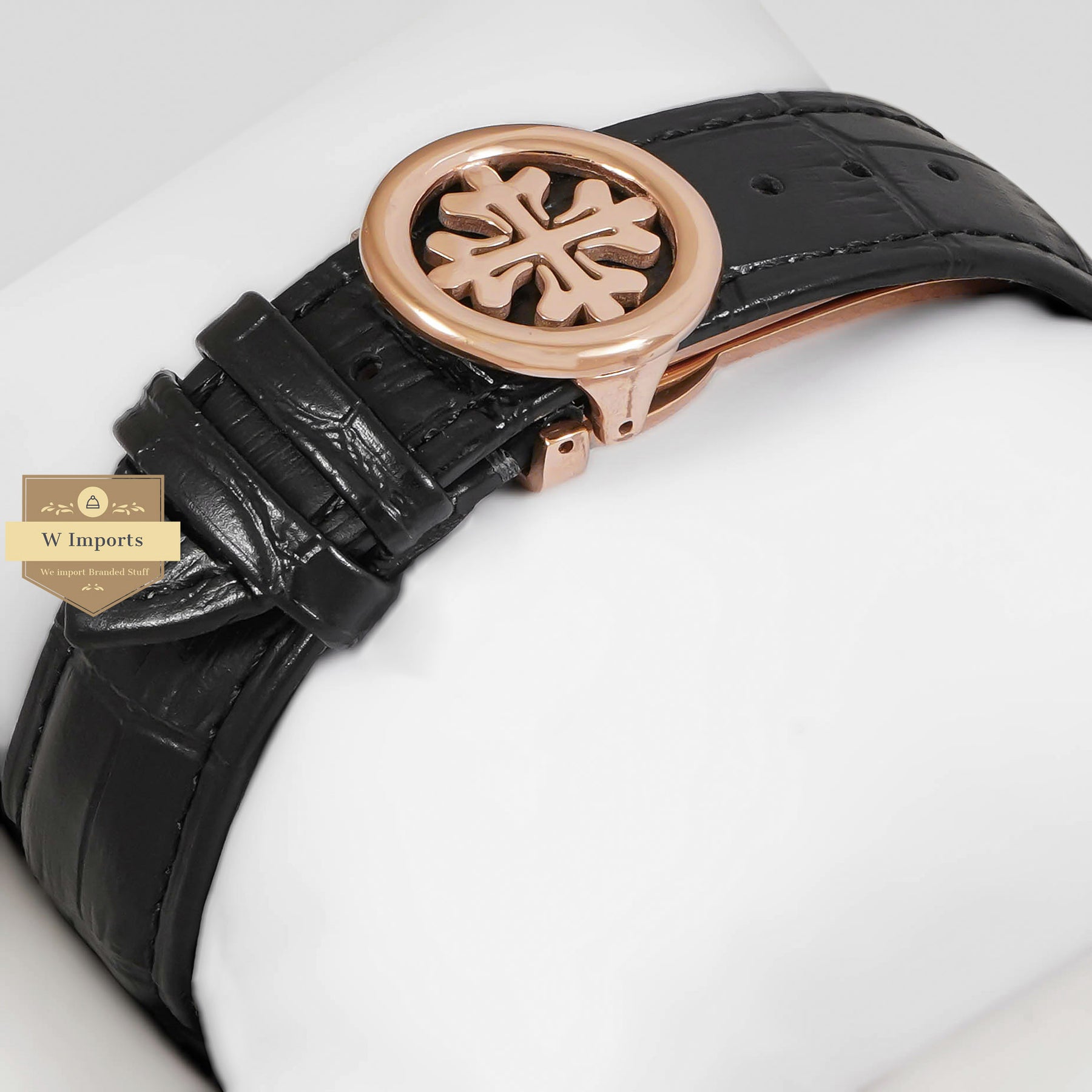 Latest Collection Rose Gold Case With Black Dial & Leather Strap