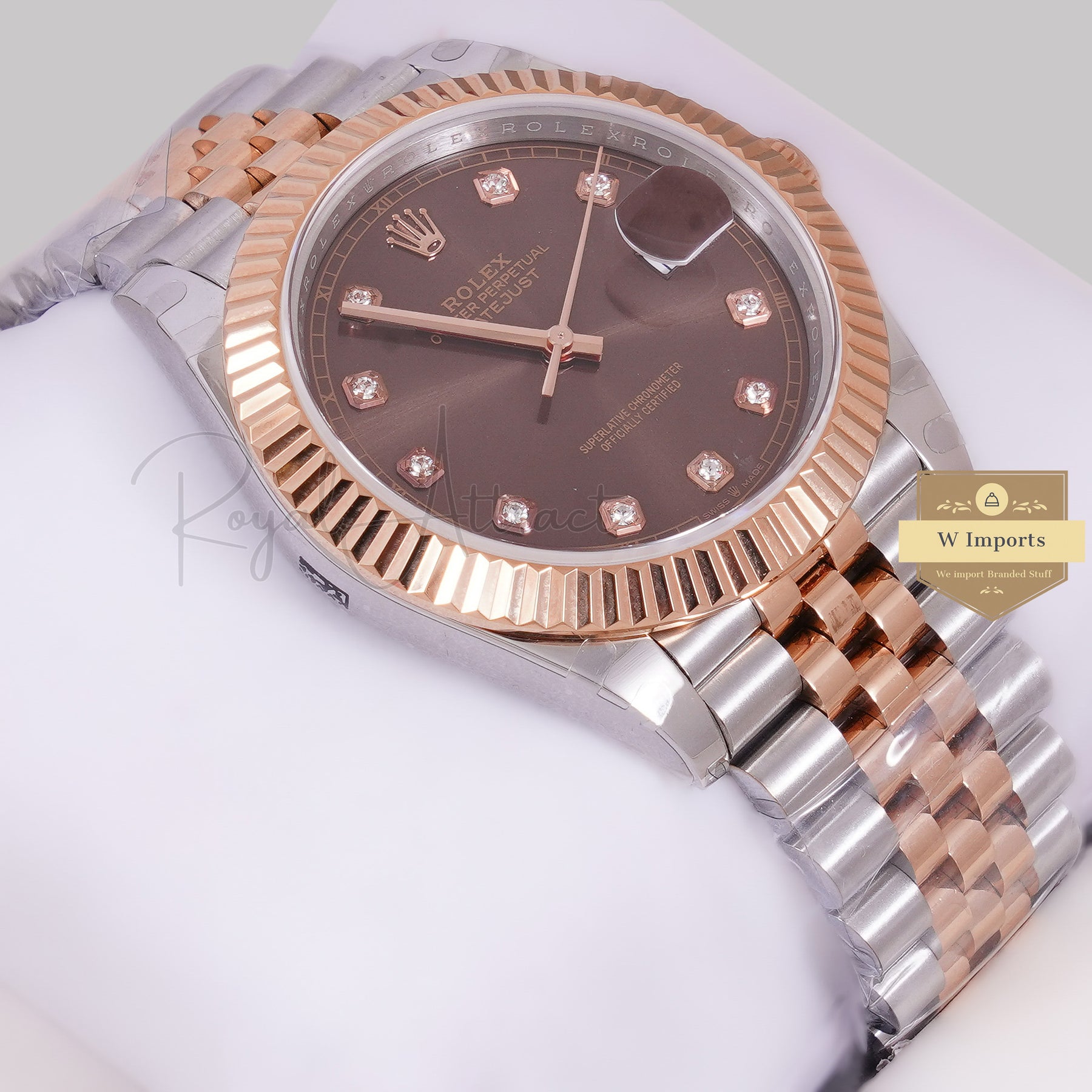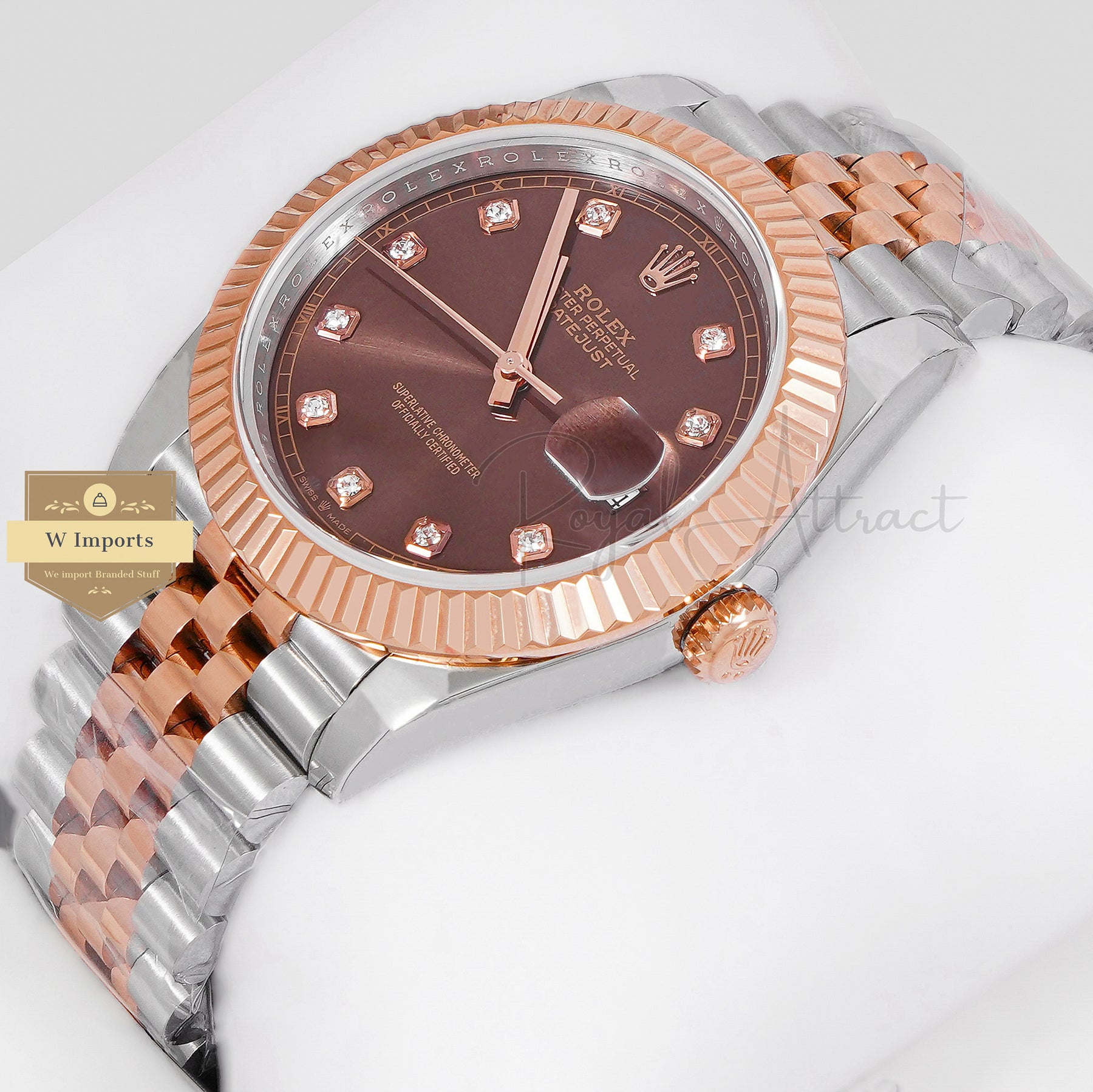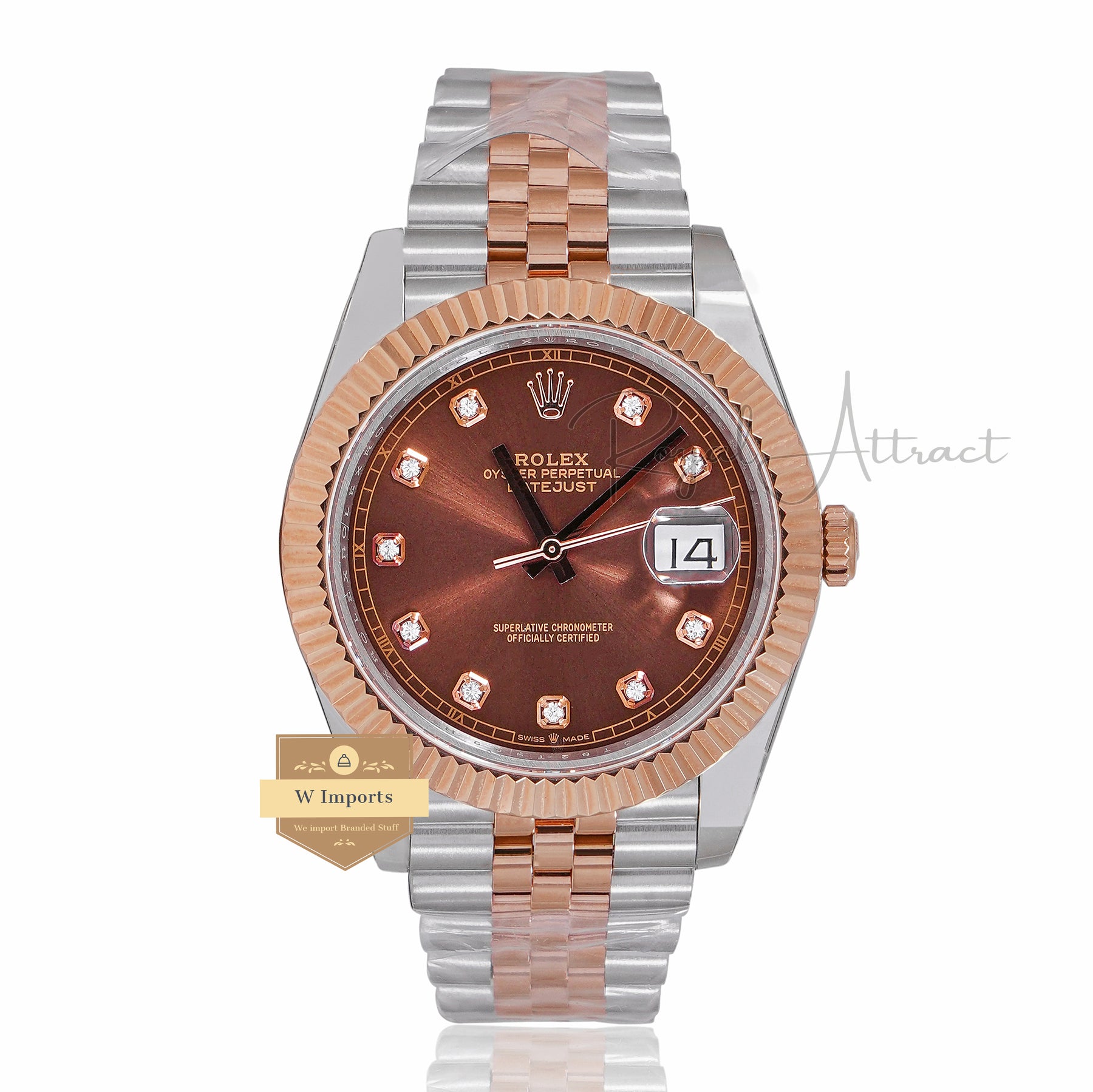 LATEST COLLECTION 41 TWO TONE ROSE GOLD WITH BROWN DIAL FLUTED BEZEL AUTOMATIC WATCH BP MADE