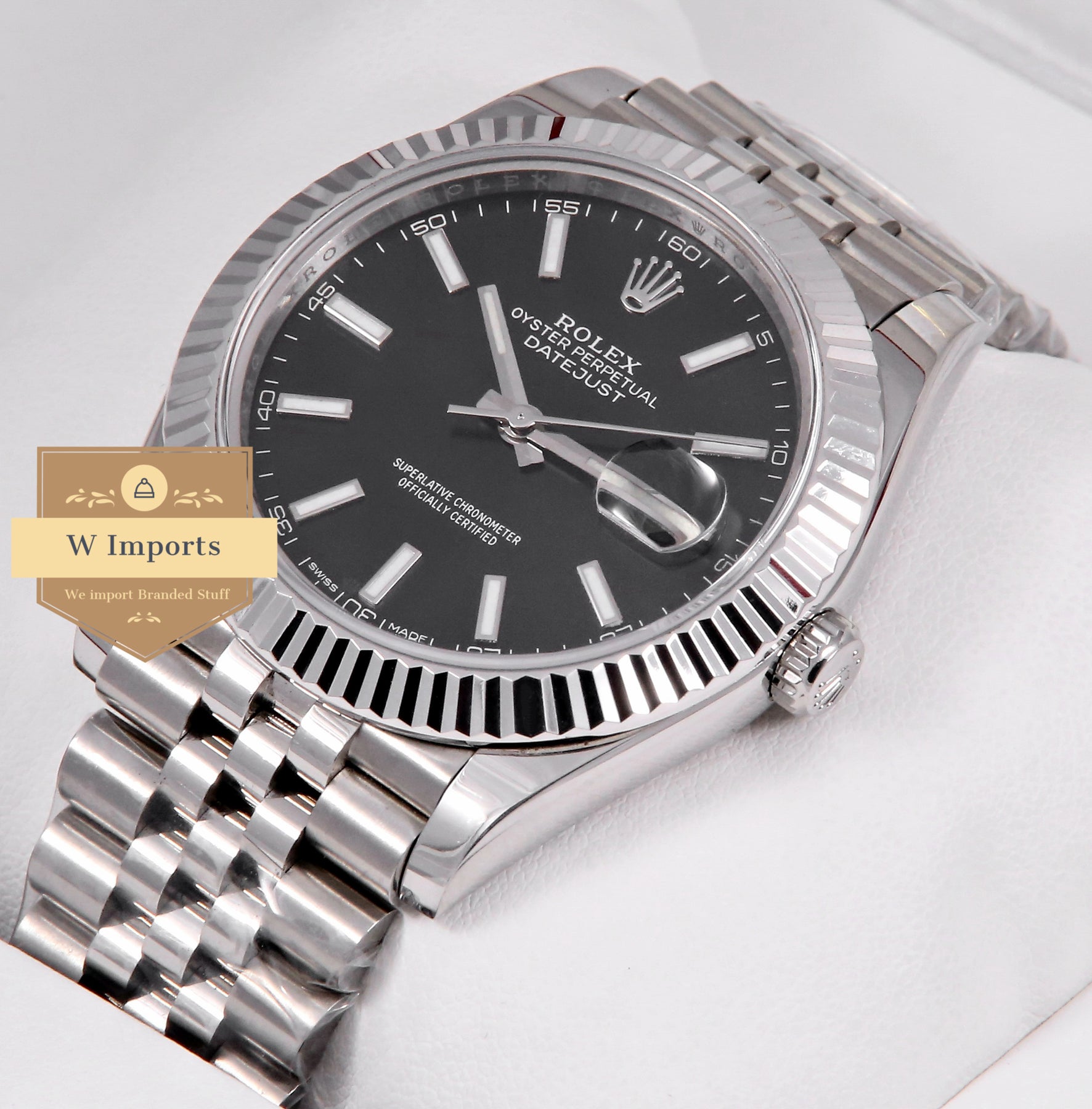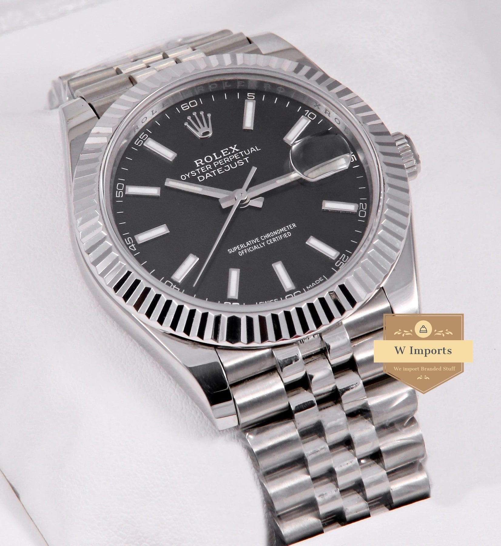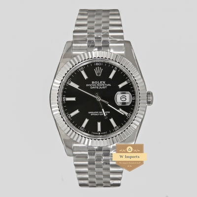 Latest Collection 41 Silver With Black Dial Fluted Bezel Automatic Watch BP Made