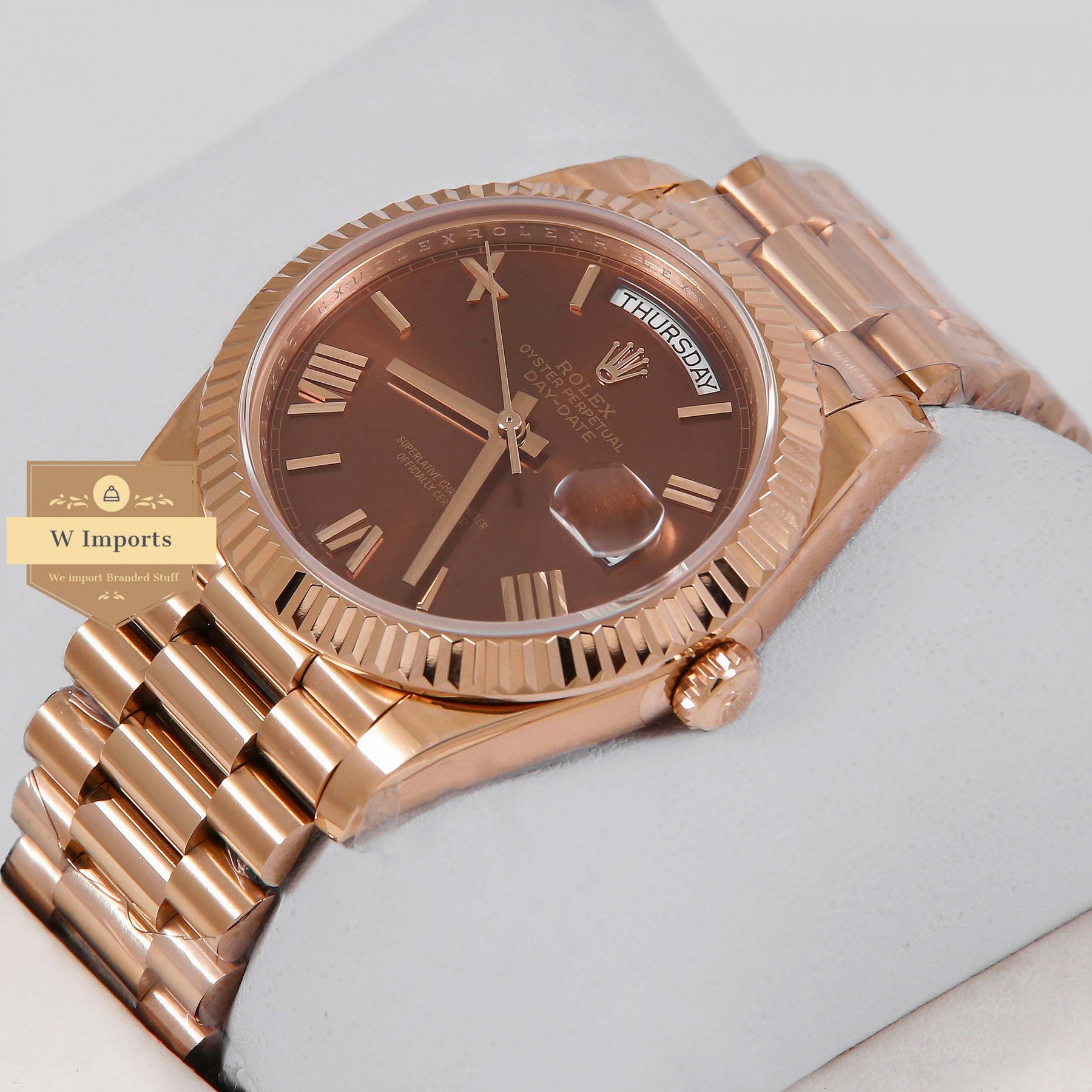 Latest Collection 40 Rose Gold With Chocolate Brown Dial Roman Numerals & Fluted Bezel Automatic Watch BP Made