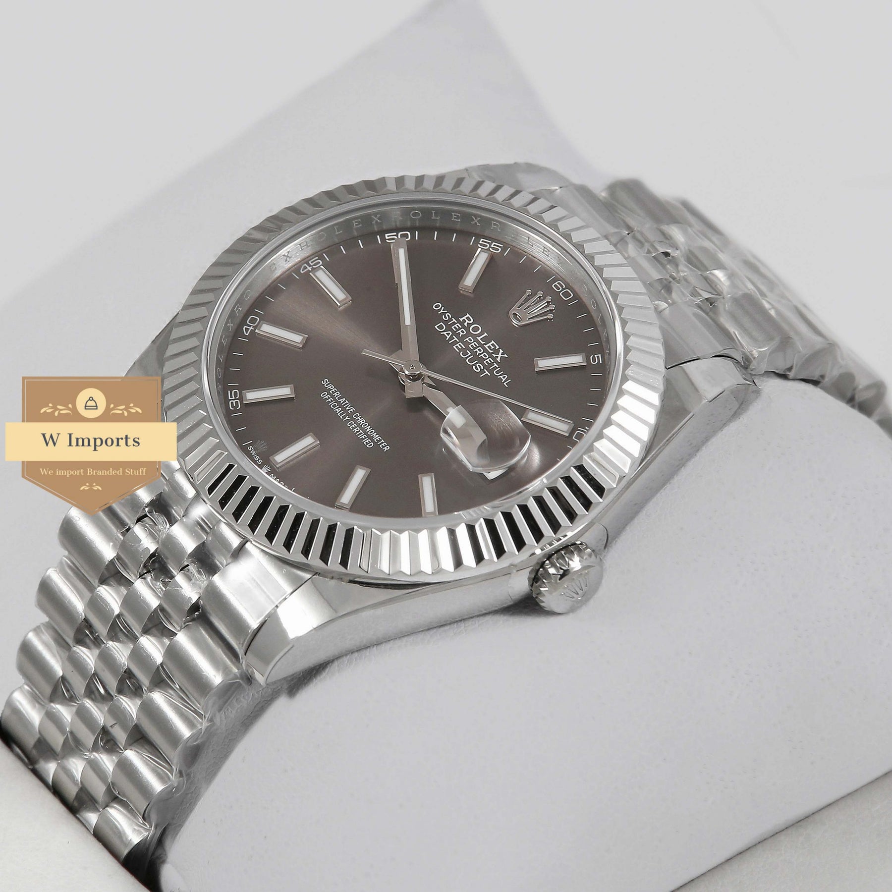 Latest Collection 41 Silver With Light Brown Dial & Fluted Bezel Automatic Watch BP Made