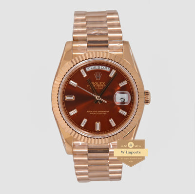 Latest Collection 40 Rose Gold With Brown Dial Fluted Bezel Automatic Watch BP Made