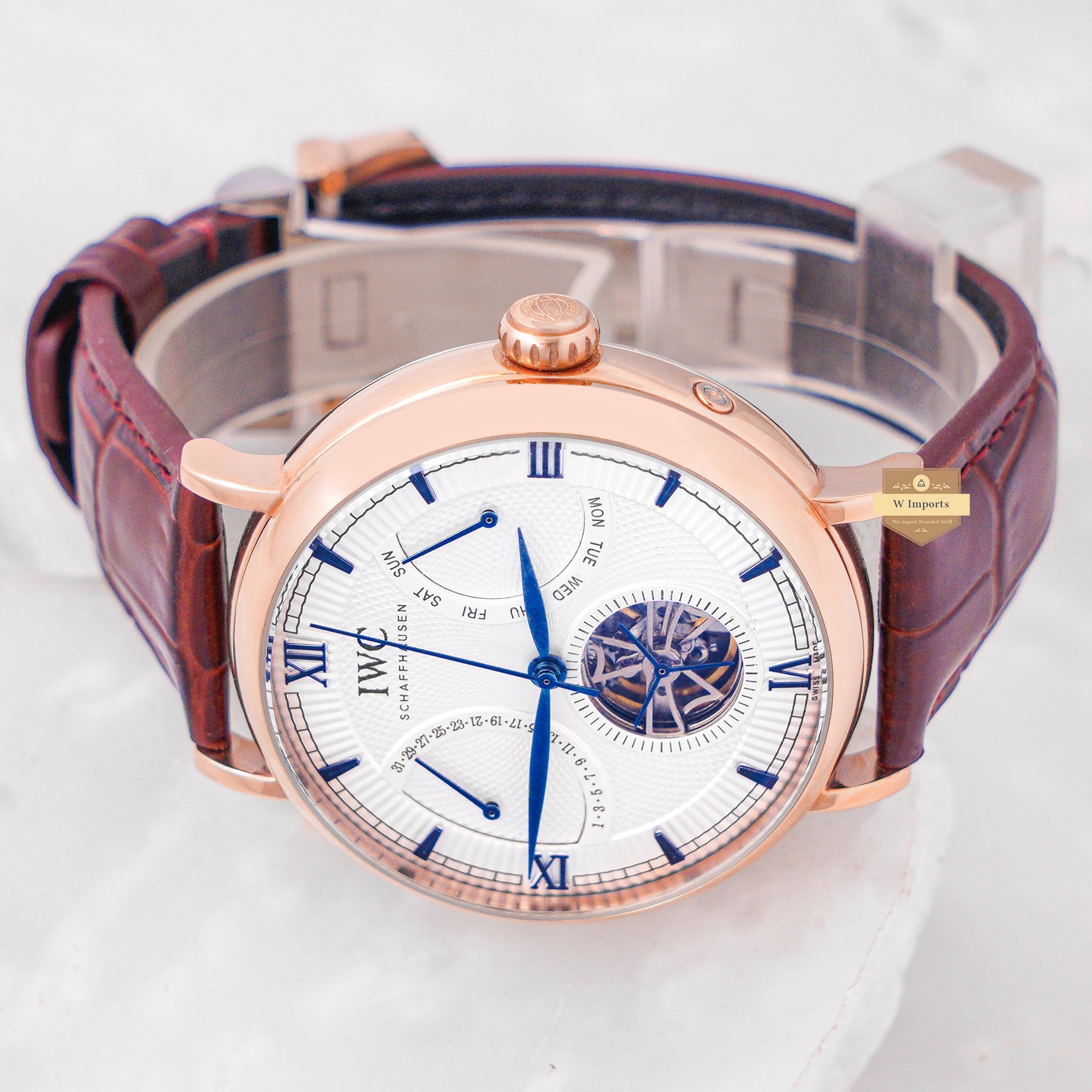 Latest Collection Chronograph Rose Gold Case With White Dial & Brown Leather Strap